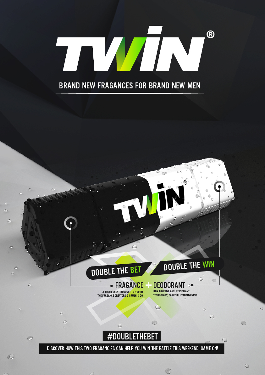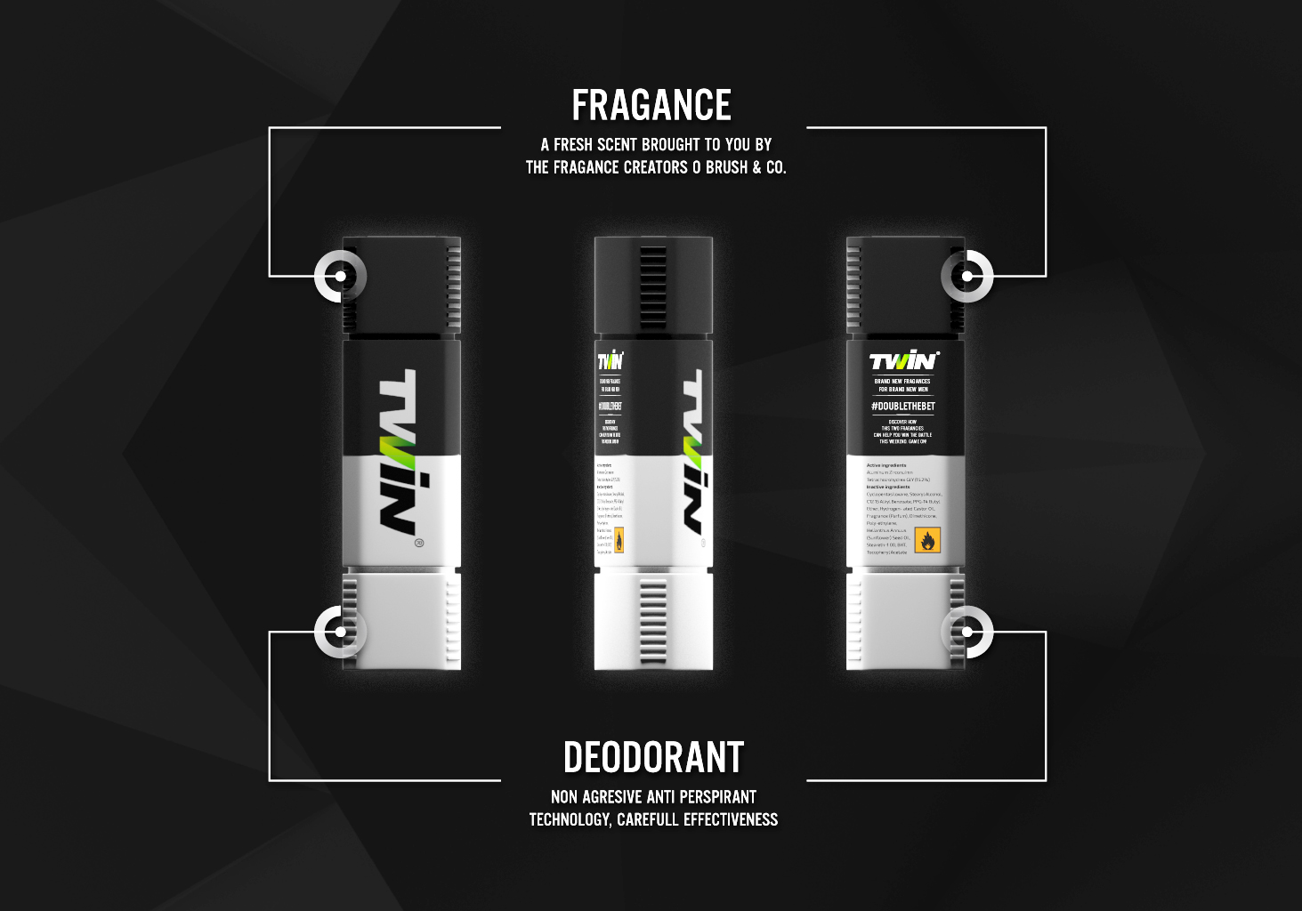 This product’s unique feature is that it contains both perfume and deodorant in a single bottle which is reflected in the use of black and white color and the construction of the logo itself.