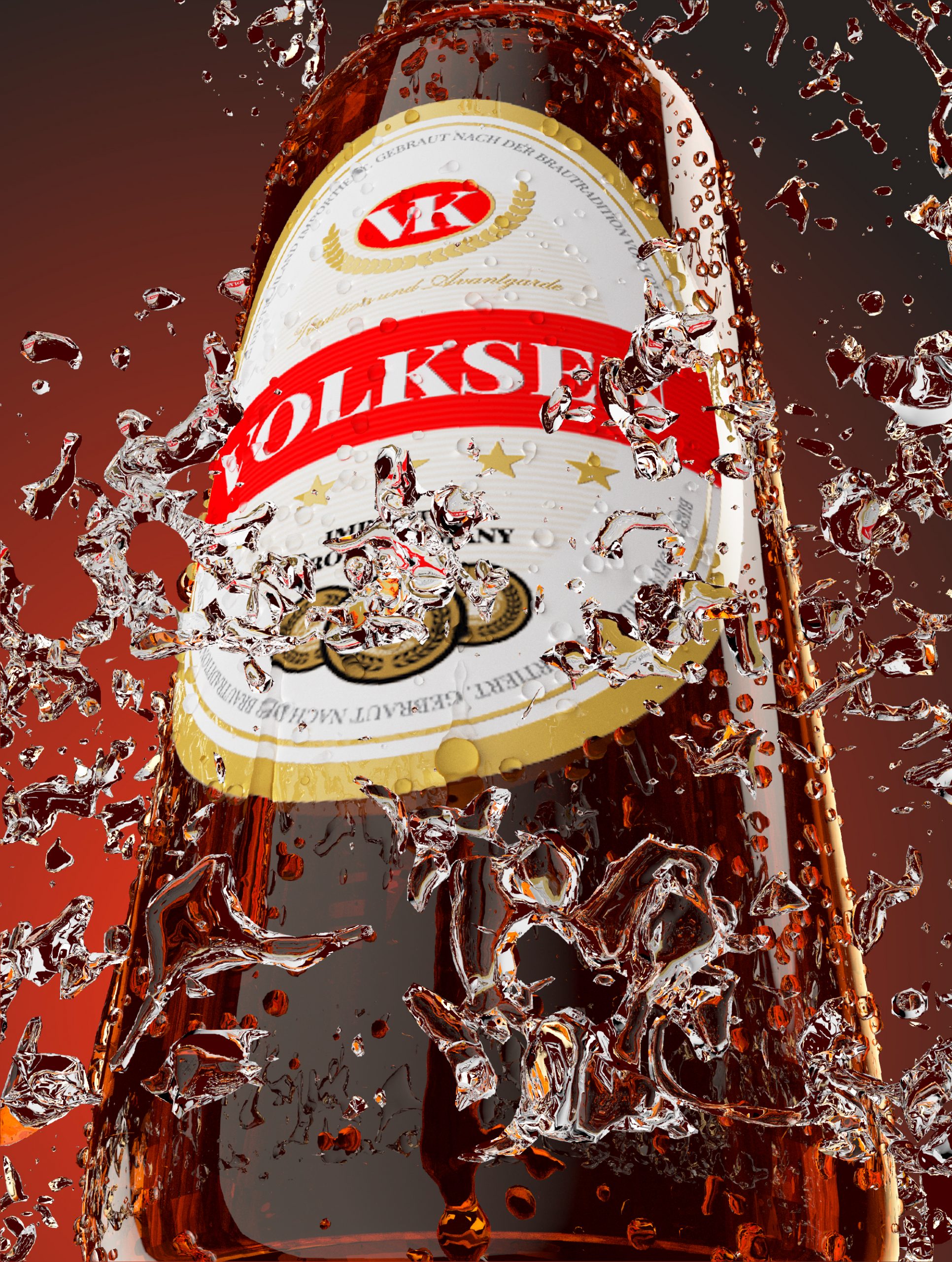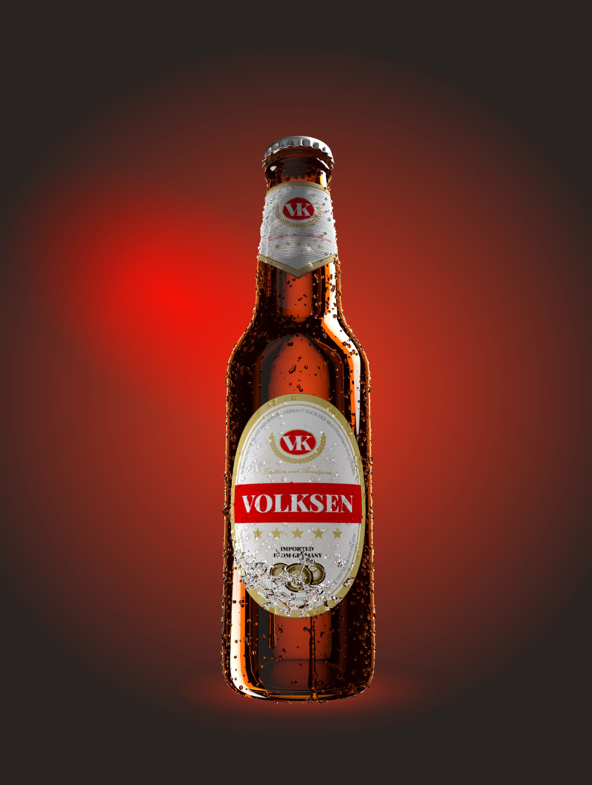 Packaging and corporate image for a beer brand. Includes corporate image design, labels, advertising materials, and a 3D product rendering for preview.